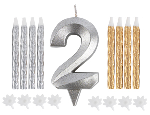 1502-6338 Свеча -цифра «2» Грань серебр+свечи 8шт