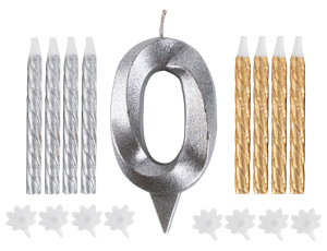 1502-6336 Свеча -цифра «0» Грань серебр+свечи 8шт