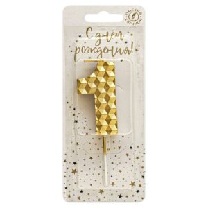 2191 Свеча тортовая цифра «1» «Соты» золото