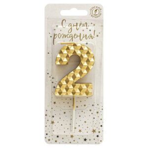 2192 Свеча тортовая цифра «2» «Соты» золото