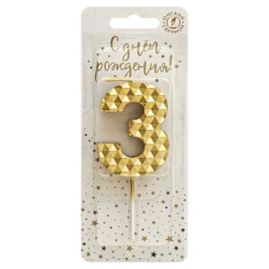 2193 Свеча тортовая цифра «3» «Соты» золото