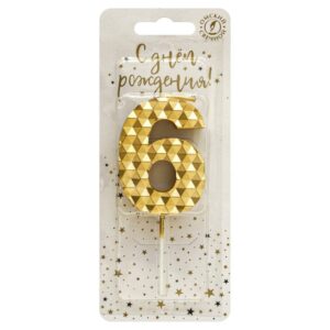 2196 Свеча тортовая цифра «6» «Соты» золото