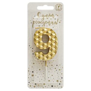 2199 Свеча тортовая цифра «9» «Соты» золото