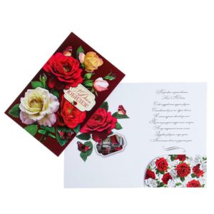 7393462 Открытка «С Днем Юбилея!» розы, красный фон, глиттер, А4