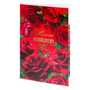 7393488 Открытка «В День Юбилея!» красные розы, красный фон