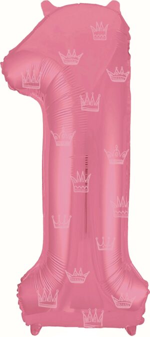 754863 ШФ 40″(102см) Цифра «1» короны, розовый в уп.