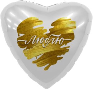 758991 ШФ 19″(48см) Сердце, Люблю (золотые штрихи), Белый