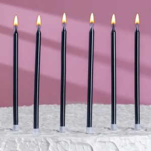 7597555 Свечи в торт «Ройс», 6 шт, высокие, 14 см, мокрый асфальт металлик