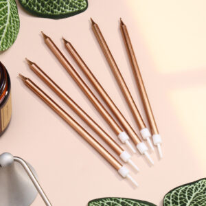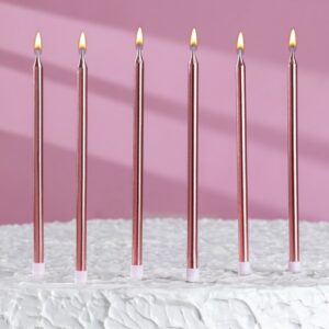 7597557 Свечи в торт «Ройс», 6 шт, высокие, 14 см, розовый металлик