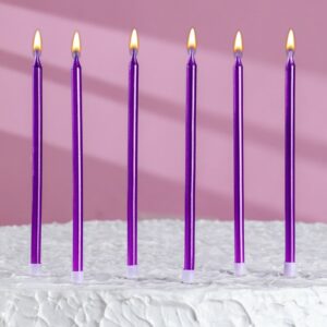 7597558 Свечи в торт «Ройс», 6 шт, высокие, 14 см, фиолетовый металлик