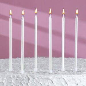 7597560 Свечи в торт «Ройс», 6 шт, высокие, 14 см, жемчужный металлик