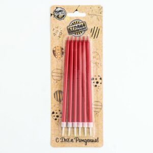 7597556 Свечи в торт «Ройс», 6 шт, высокие, 12,5 см, рубиновый металлик