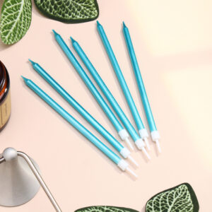 7597559 Свечи в торт «Ройс», 6 шт, высокие, 12,5 см, небесно-голубой металлик
