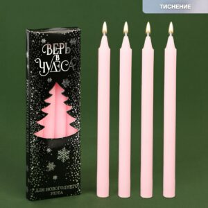 7610362 Набор свечи новогодние «Верь в чудеса», 4 шт, розовые, 15 х 1 х 1 см