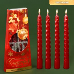 7625226 Набор свечи новогодние «Счастья в Новом году», 4 шт, красные, 14,5 х 1,5 см