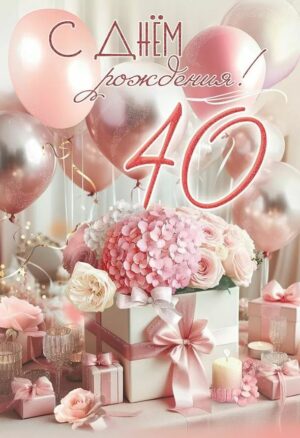 7601025 Открытка «С Днем рождения! 40» подарки А5
