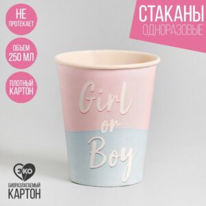 7664938 Стакан бумажный Girl or Boy, набор 6 шт, 250 мл