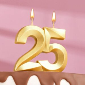 7664832 Свеча в торт юбилейная «Грань», цифра 25, золотой металлик, 6,5 см