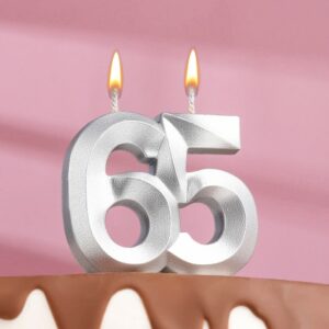 7664843 Свеча в торт юбилейная «Грань», цифра 65, серебряный металлик, 6,5 см