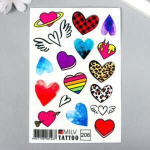 7915560 Татуировка на тело «Разные сердечки» 10х15 см
