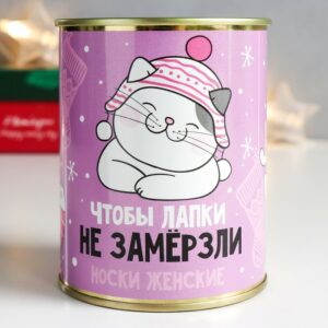 7984744 Носки в банке «Чтобы лапки не замерзли» (женские, цвет белый)