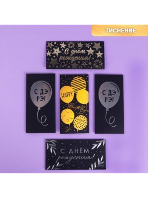 7892783 Конверт для денег «С Днём Рождения!»,чёрный крафт