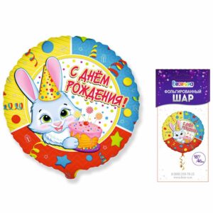 896-QX ШФ 18″ (46см) Круг Зайчик С днем рождения, в уп.