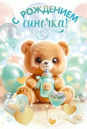 90000157 Открытка «С рождением сыночка» Мишка А5