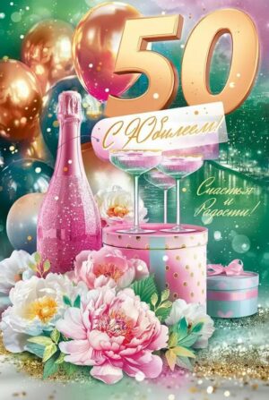 90000159 Открытка «С Юбилеем! 50 лет» Шампанское А5