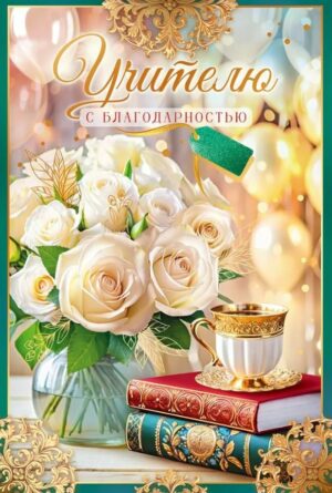 90000337 Открытка «Учителю с благодарностью» Белые розы А5