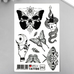 9156590 Татуировка на тело «Бабочки ч/б» 10х15 см