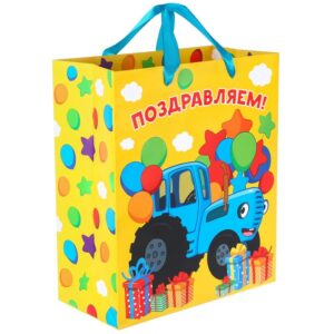 9240292 Пакет ламинат вертикальный «Поздравляем!», Синий трактор, 23х27х11,5 см