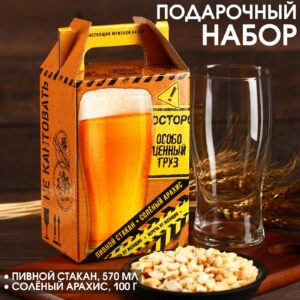 9321005 Подарочный набор «Осторожно»: пивной стакан 570 мл., солёный арахис 100 г.