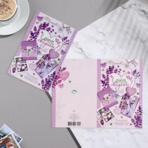 9331545 Открытка «С Днём Свадьбы!» фиолетовые тона , сирень, коллаж, 19х29 см