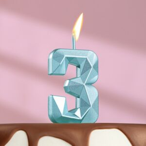 9338074 Свеча тортовая цифра «3» «Алмаз», голубая