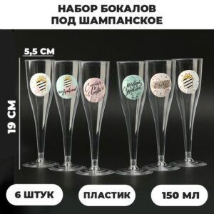 9325286 Набор бокалов для шампанского с наклейками «Антистресс» 6 шт