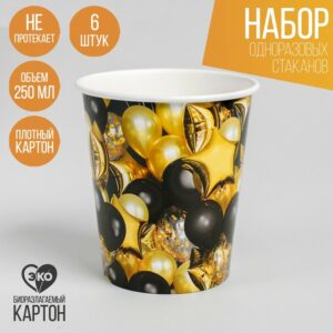 9500615 Стаканы 250мл «Чёрное золото. Шары» 6шт