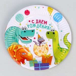 9500607 Тарелка бумажная «Динозаврики» 18см, 6шт