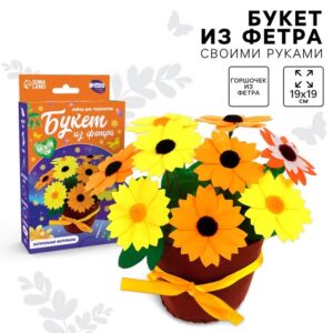 10085133 Набор для творчества. Букет из фетра в горшочке «Подсолнухи»