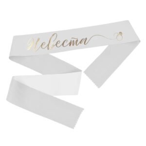 7509306 Лента атласная, белая «Невеста», 190х9,5 см, атлас
