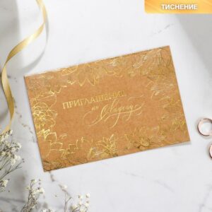 5014104 Приглашение на свадьбу «Цветы», крафт, с тиснением