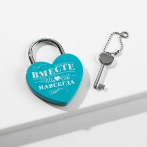 5399422 Замок свадебный с ключом «Вместе навсегда», с белым нанесением, бирюзовый