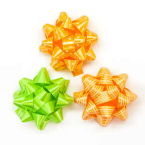 17804 Бант Звезда Оранжевый коралл/Салатовый, 7см *1/12