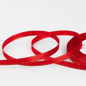 1902785 Лента атласная «Золотые нити» красная, 6ммх1м *1/23м