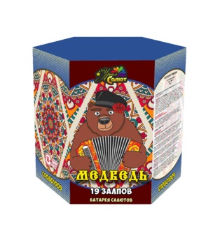 Батарея салютов, калибр 0,8″, 19 залпов, время работы до 30сек,высота до 20м.