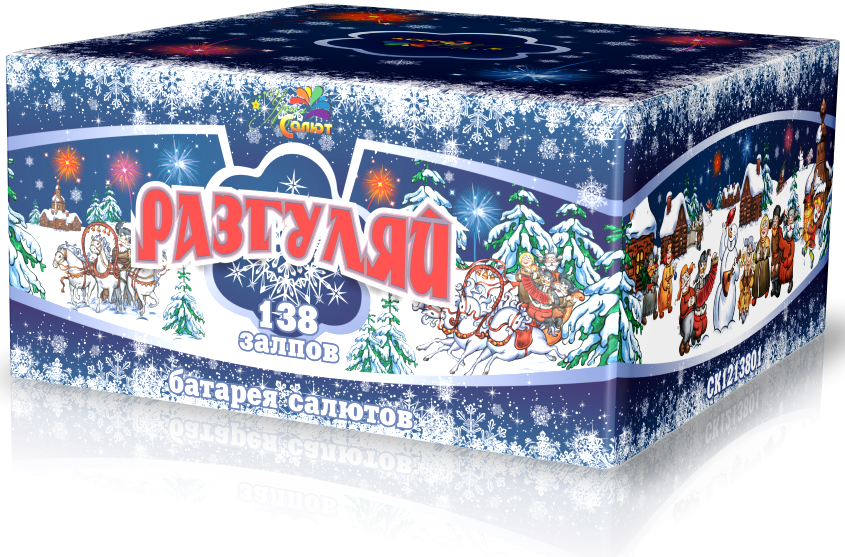 Батарея салютов, калибр 1,2″, 138 залпов, время работы до 1мин. 45сек,высота до 45м.