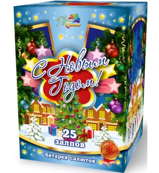 Батарея салютов, калибр 1,2″, 25 залпов, время работы до 30сек, высота до 40м.