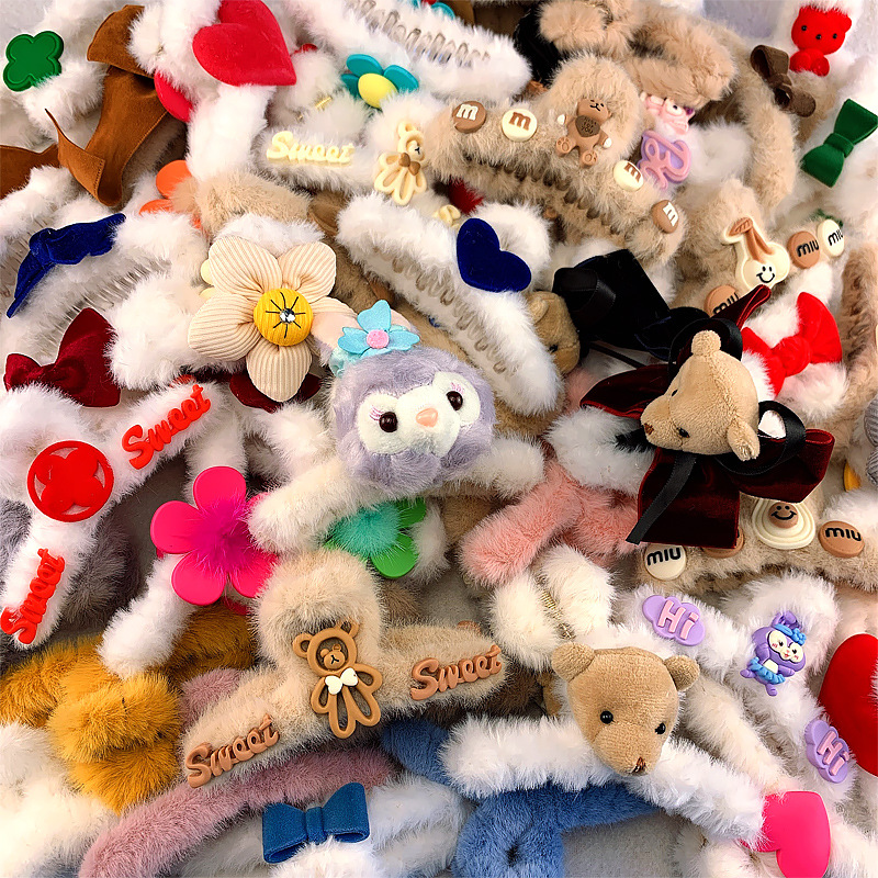 Заколка-краб, пушистая с игрушками 13см, в ассортименте